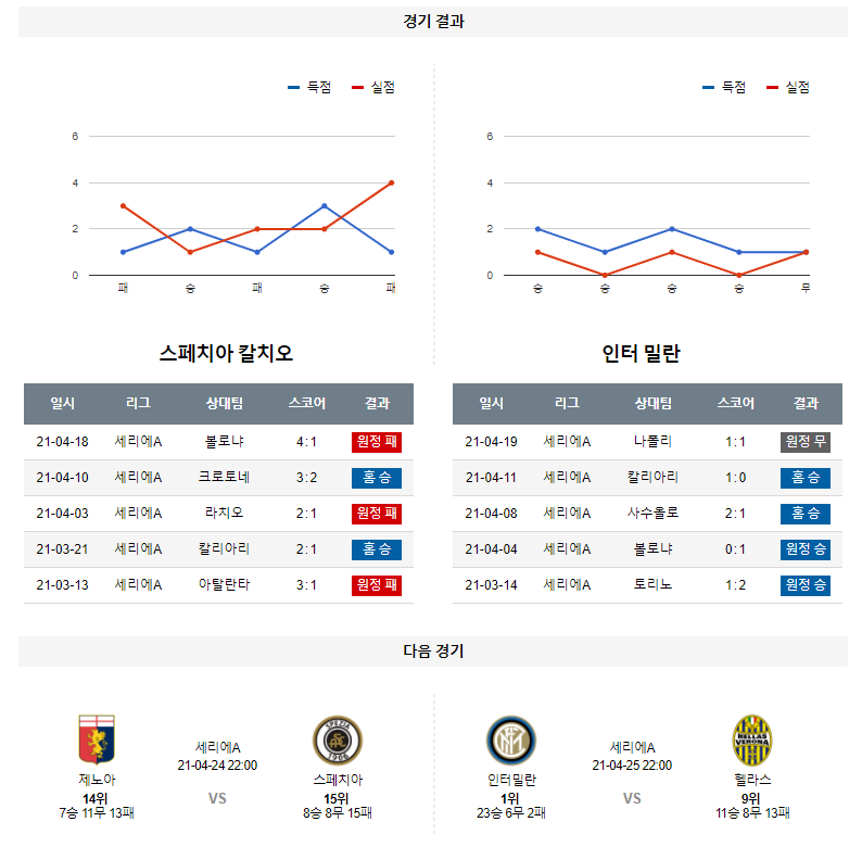 4월 22일 스페치아 인터밀란 분석 세리에A 축구