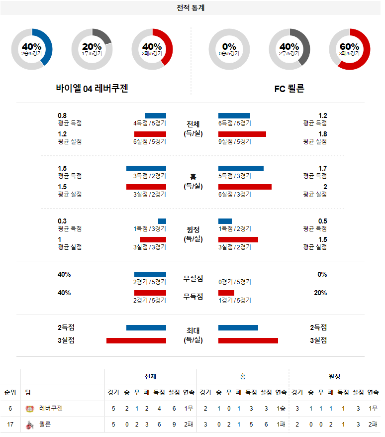1. 최근 5경기 맞대결 : 5전 3승 0무 2패 (레버쿠젠 우세)