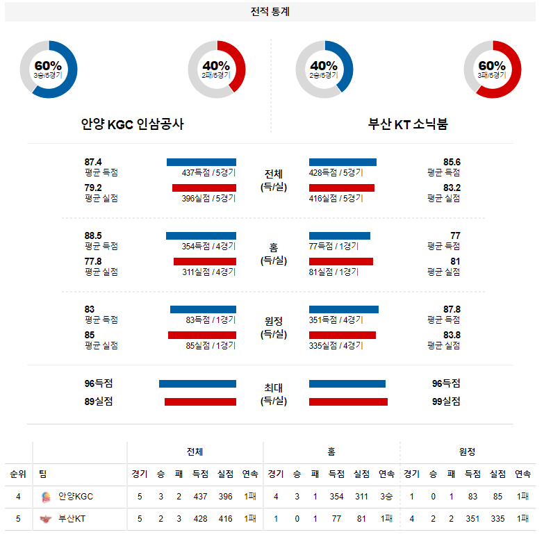 2월 5일 안양KGC 부산KT 분석 KBL 농구