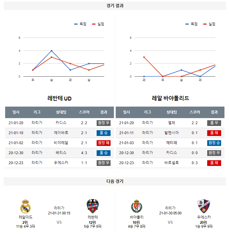 1월 23일 레반테 바야돌리드 분석 프리메라리가 축구