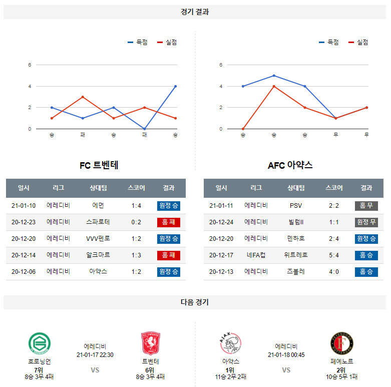 1. 최근 6경기 맞대결 : 6전 3승 2무 1패 15득점 9실점 (아약스 우세)