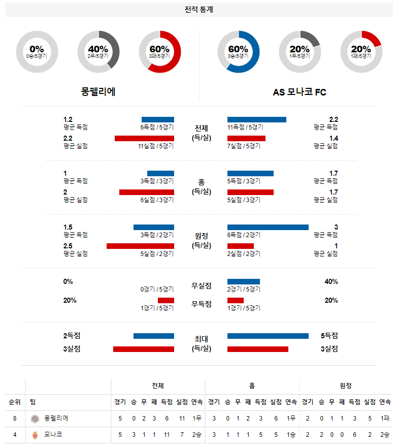 3. 모나코 올 시즌 원정 성적 : 9전 4승 5패 (무실점 비율 : 22%, 무득점 비율 : 11%)