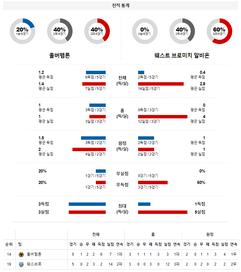 ◎ 웨스트브롬 (19위, 패무패패패)