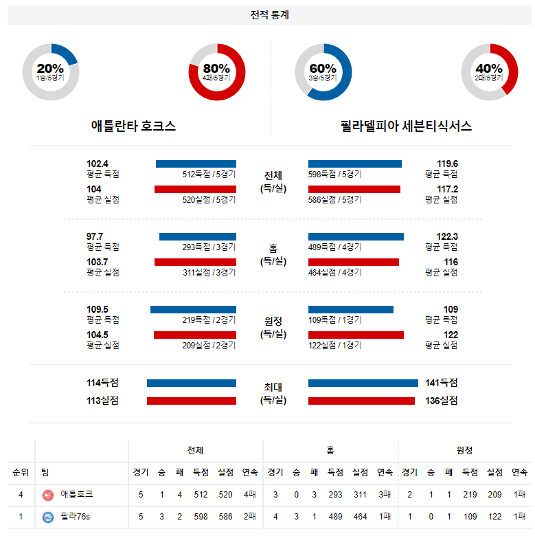 [핸디캡 3.5] 필라델피아 세븐티식서스 승 (추천 o)