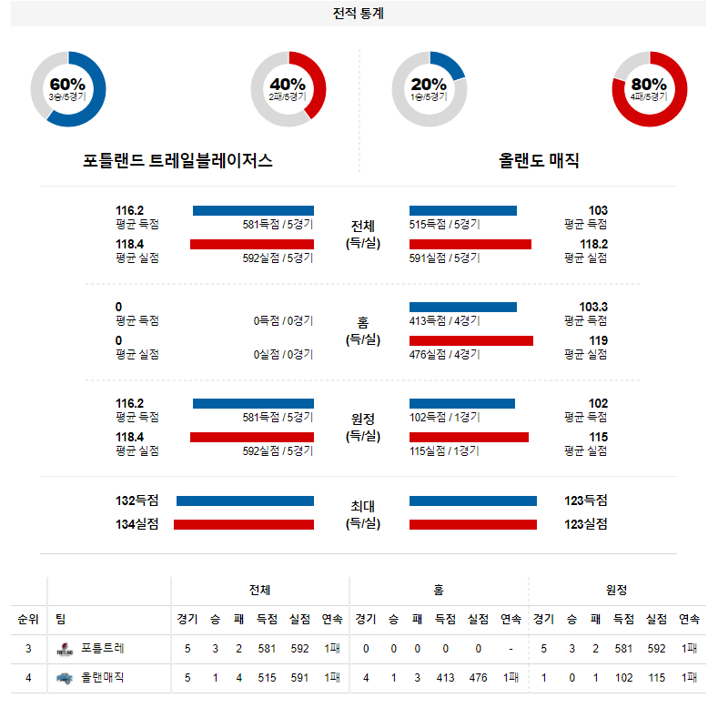 2월 10일 포틀랜드 올랜도 분석 NBA 농구