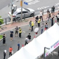 [포토]다시 길어진 임시 선별검사소 대기줄