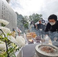 21일 서울 성수대교 북단 위령탑 앞에서 열린 성수대교 붕괴사고 30주기 합동위령제에서 유가족들이 헌화 및 분향을 하고 있다.