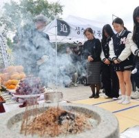 21일 서울 성수대교 북단 위령탑 앞에서 열린 성수대교 붕괴사고 30주기 합동위령제에서 무학여고 학생들이 헌화 및 묵념을 하고 있다.
