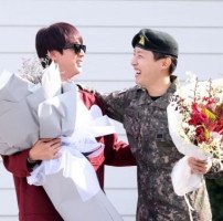 "충성!" BTS 제이홉 전역 "큰 응원과 사랑에 감사"…맏형 진과 포옹