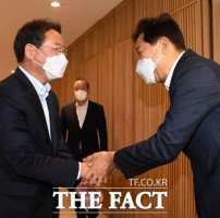 김동연 경기도지사 당선인 이어오세훈 서울시장이 김동연 경기도지사 당선인에 이어 유정복 인천시장 당선인에게 수도권 삼자 협의체 구성을 제안했다. 오 시장(오른쪽)이 27일 오전 집무실에서 유 당선인을 맞이하고 있다. /서울시 제공[더팩트ㅣ이헌일 기자] 오세훈 서울시장이 김동연 경기도지사 당선인에 이어 유정복 인천시장 당선인…