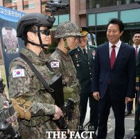 예비군 장비 살펴보며 미소짓는 오세훈 시장 [포토]