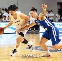 한국 농구대표팀의 여준석(왼쪽)이 17일 안양체육관에서 열린 KB국민은행 초청 2022 남자농구 국가대표 평가전 필리핀과의 경기에서 필리핀 드와이트 라모스의 수비를 피해 드리블을 하고 있다. 2022. 6. 17. 안양 | 박진업기자 upandup@sportsseoul.com