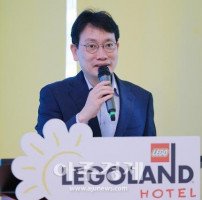 [사진=유대길 기자 dbeorlf123@ajunews.com]이정일 레고랜드 코리아 리조트 이사가 16일 강원도 춘천시 레고랜드 코리아 리조트에서 열린 '레고랜드 호텔(LEGOLAND Hotel)' 미디어 공개 행사에 앞서 인사말을 하고 있다.레고랜드 코리아 리조트 입구 바로 앞에 위치한 '레고랜드 호텔'은 지상 4층으로…