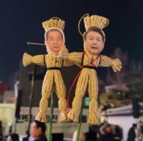27일 한덕수 대통령 권한대행 겸 국무총리 탄핵소추안이 국회를 통과한 가운데 한 대행 탄핵을 촉구하는 집회 현장에 윤 대통령과 한 대행의 ‘저주 인형’이 등장해 눈길을 끌었다.지난 26일 한 누리꾼 A씨는 엑스(X·옛 트위터)를 통해 서울 종로구 경복궁역 4번 출구에서 열린 ‘내란 연장 헌법파괴 한덕수 퇴진 긴급행동’에 …