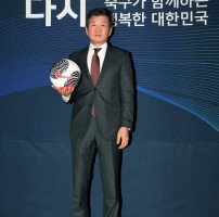 대한축구협회 정몽규 회장이 19일 서울 종로구 포니정재단빌딩에서 제 55대 대한축구협회장 선거 출마 기자회견을 한 뒤 기념촬영을 하고 있다. 2024. 12. 19.박진업 기자 upandup@sportsseoul.com