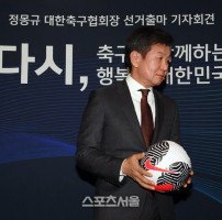 대한축구협회 정몽규 회장이 19일 서울 종로구 포니정재단빌딩에서 제 55대 대한축구협회장 선거 출마 기자회견을 하고 있다. 2024. 12. 19.박진업 기자 upandup@sportsseoul.com