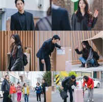 정해인, 정소민이 우당탕 재회를 한다. tvN 토일드라마 ‘엄마친구아들’(연출 유제원, 극본 신하은, 제작 스튜디오드래곤?더모도리) 측은 오늘(17일) 첫 방송을 앞두고, 혜릉동에서 다시 만난 ‘소꿉남녀’ 최승효(정해인 분)와 배석류(정소민 분)의 스틸컷을 공개했다. 혜릉동 패밀리의 등장에 다급히 몸을 숨긴 배석류가 무슨…