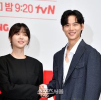 배우 김지은과 윤지온이 4일 신도림 라마도호텔에서 열린 tvN 새드라마 ‘엄마친구아들’ 제작발표회 무대에 올라 포토타임을 갖고 있다. 연출: 유제원, 출연:정해인, 정소민,김지은,윤지온. 2024.08.14.강영조기자 kanjo@sportsseoul.com