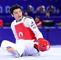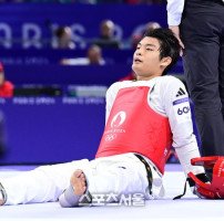 대한민국 태권도 국가대표 서건우가 10일(한국 시간) 프랑스 파리 그랑팔레에서 열린 2024 파리올림픽 태권도 남자 80㎏급 덴마크의 에디 흐르니치와의 동메달 결정전에서 패한 뒤 아쉬워하고 있다. 2024. 8. 10.파리 | 박진업 기자 upandup@sportsseoul.com