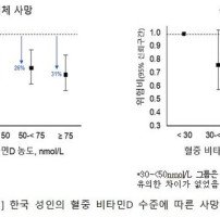 혈중 비타민D 농도가 충분하면 사망위험이 크게 줄어들고…