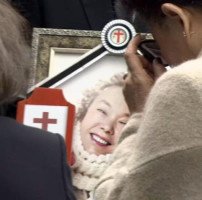 [사진=연합뉴스]27일 고 김수미 씨의 영결식이 열린 서울 한양대병원 장례식장에서 유족이 영정사진을 들고 있다. 아주경제=유대길 기자 dbeorlf123@ajunews.com