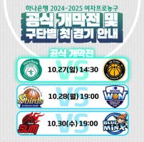 사진=WKBL 제공 ‘하나은행 2024~2025 여자프로농구’의 개막이 이틀 앞으로 다가왔다. 27일 하나은행과 KB국민은행의 공식 개막전을 시작으로 28일 신한은행-우리은행, 30일 BNK-삼성생명의 경기까지 한국여자농구연맹(WKBL) 6개 구단은 시즌 첫 경기를 치른다. ▲ 하나은행 vs KB(27일 일요일 14시 3…